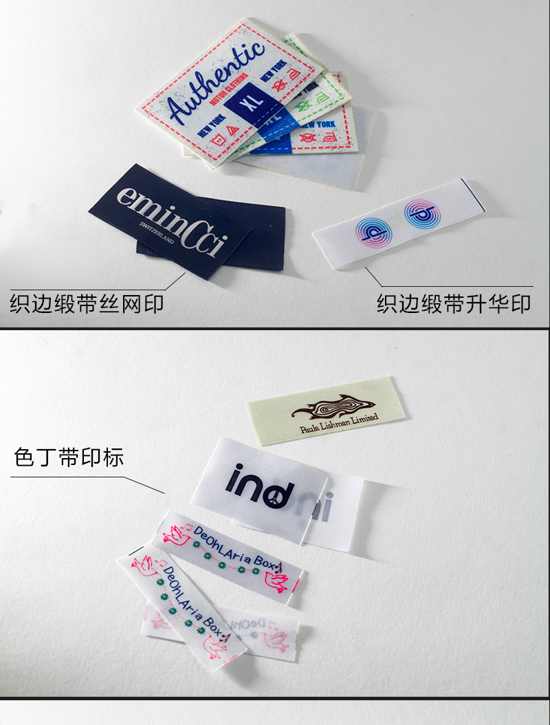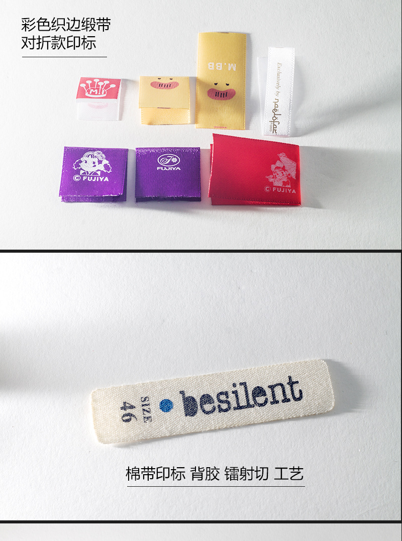 印嘜布標(biāo)的優(yōu)點:一是采用純棉帶與緞帶,材料天然環(huán)保,面料柔軟高檔不割手,是高檔服裝的首選;二是采用環(huán)保的油墨印刷,色彩得以完美展示,圖案及文字LOGO的顏色與形狀展現(xiàn)得淋漓盡致。三是采用現(xiàn)代高科技印刷機(jī)器配以本廠先進(jìn)的技術(shù),使得印刷的內(nèi)容色牢度也非常強(qiáng),可通過水洗,石磨都不會掉色。